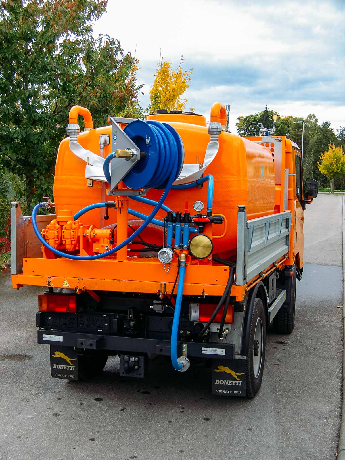 Allestimento scarrabile applicabile alla versione “NEVE” tramite la piastra anteriore e gli attacchi idraulici. Il serbatoio acqua di alimentazione può essere appoggiato direttamente sul cassone ribaltabile o come unità indipendente con la versione scarrabile monobraccio