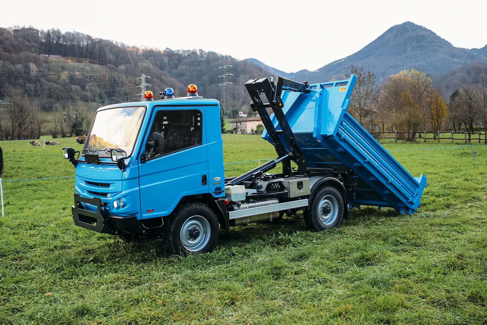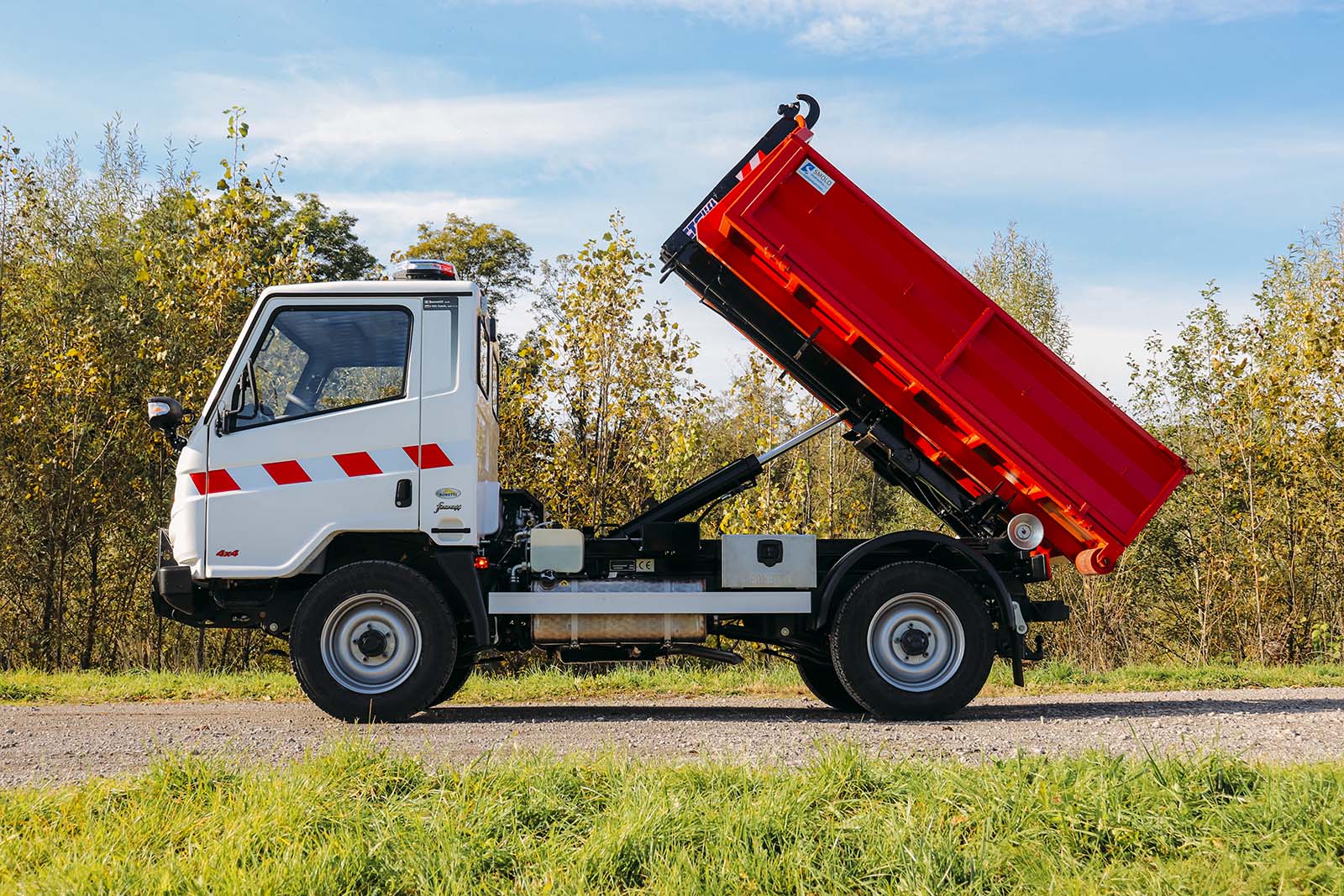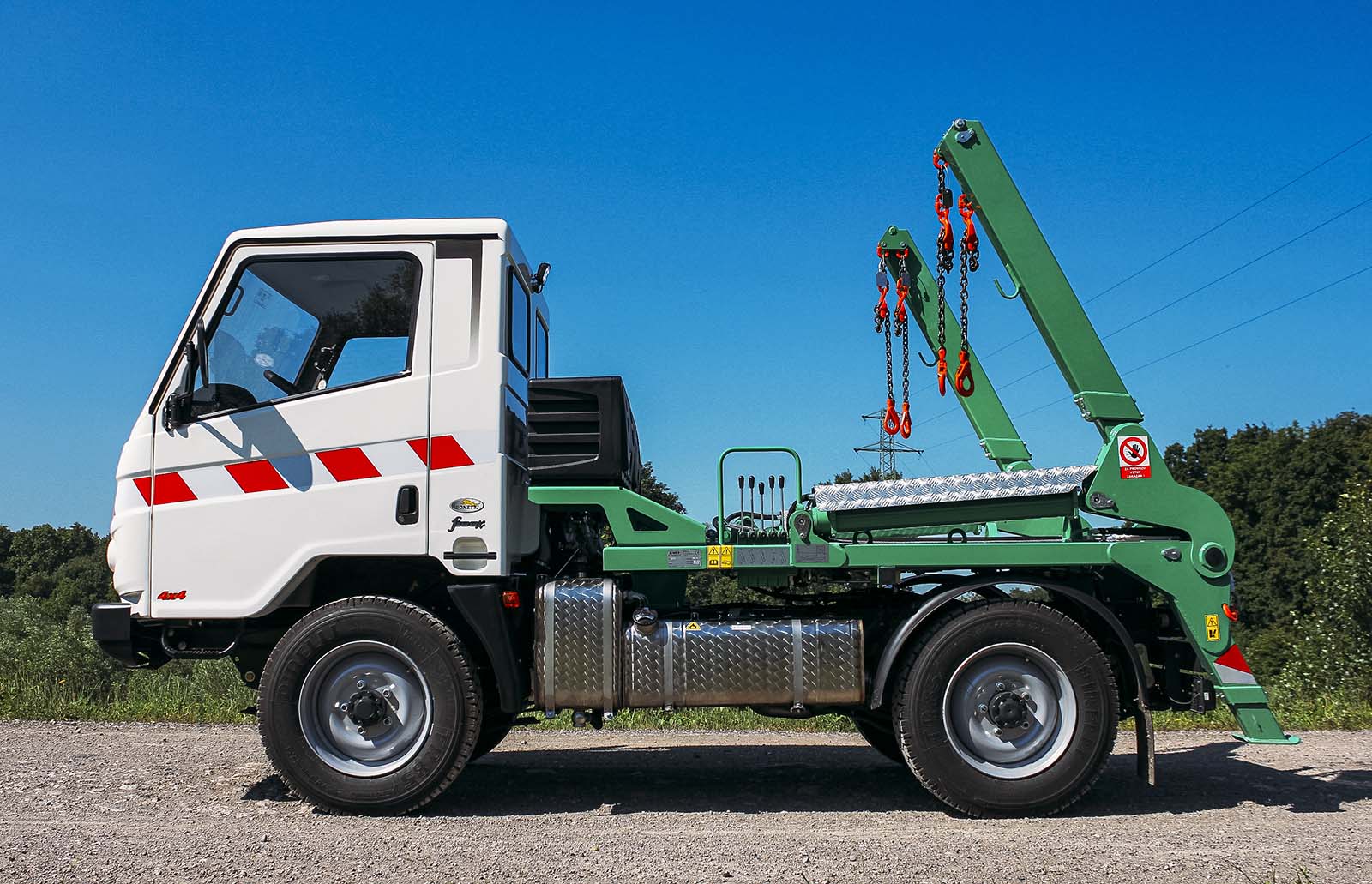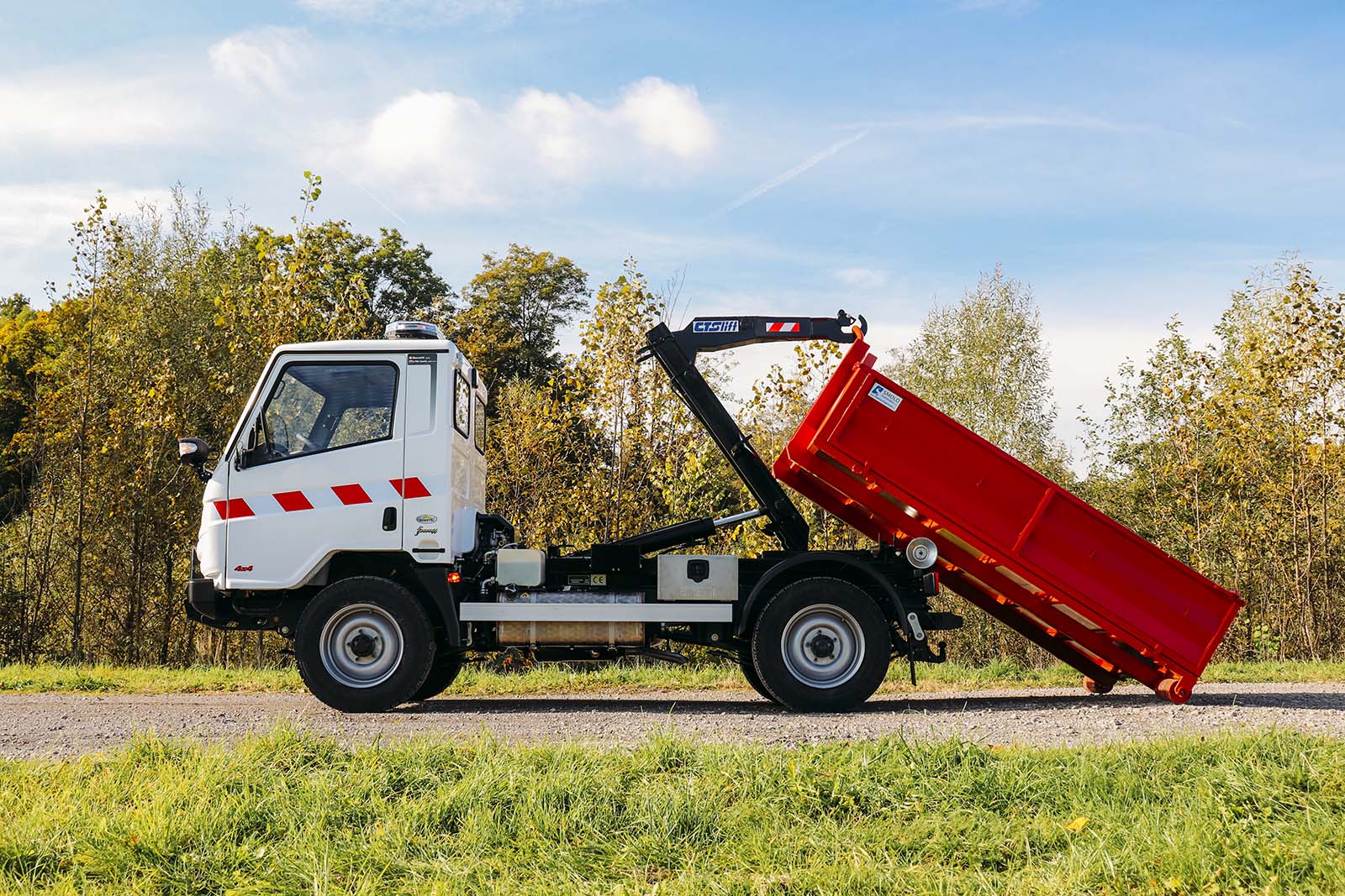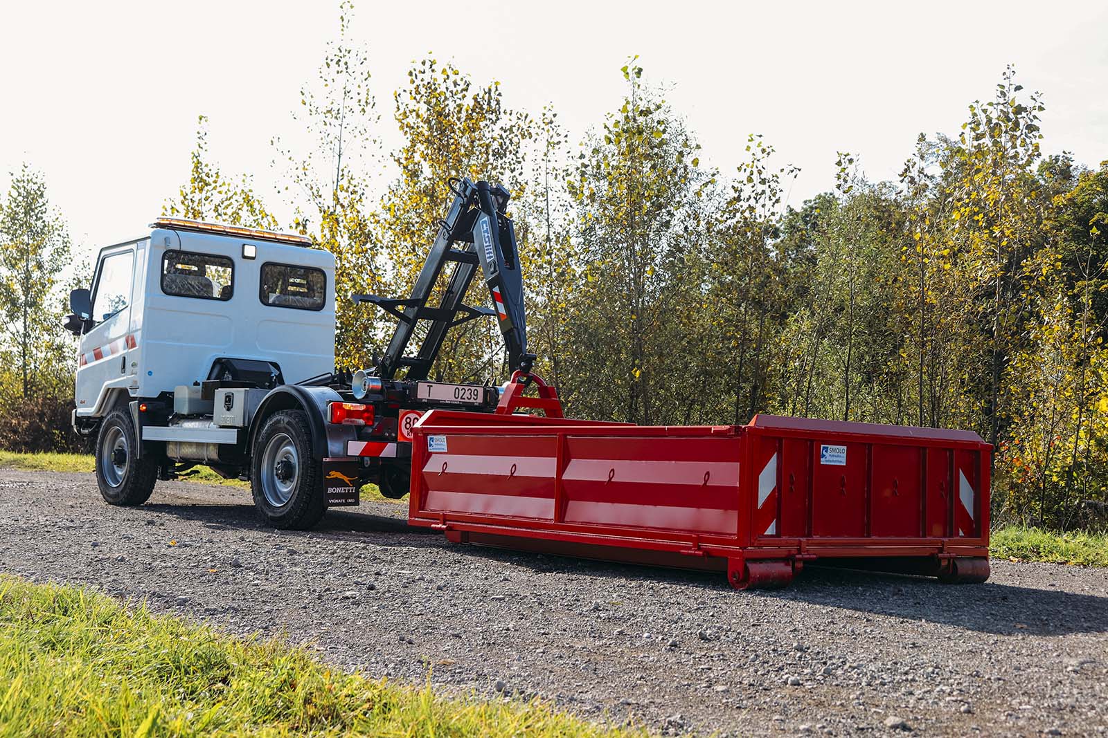 La versione del veicolo con scarrabile monobraccio permette di scarrare svariate attrezzature o allestimenti in pochissimo tempo.