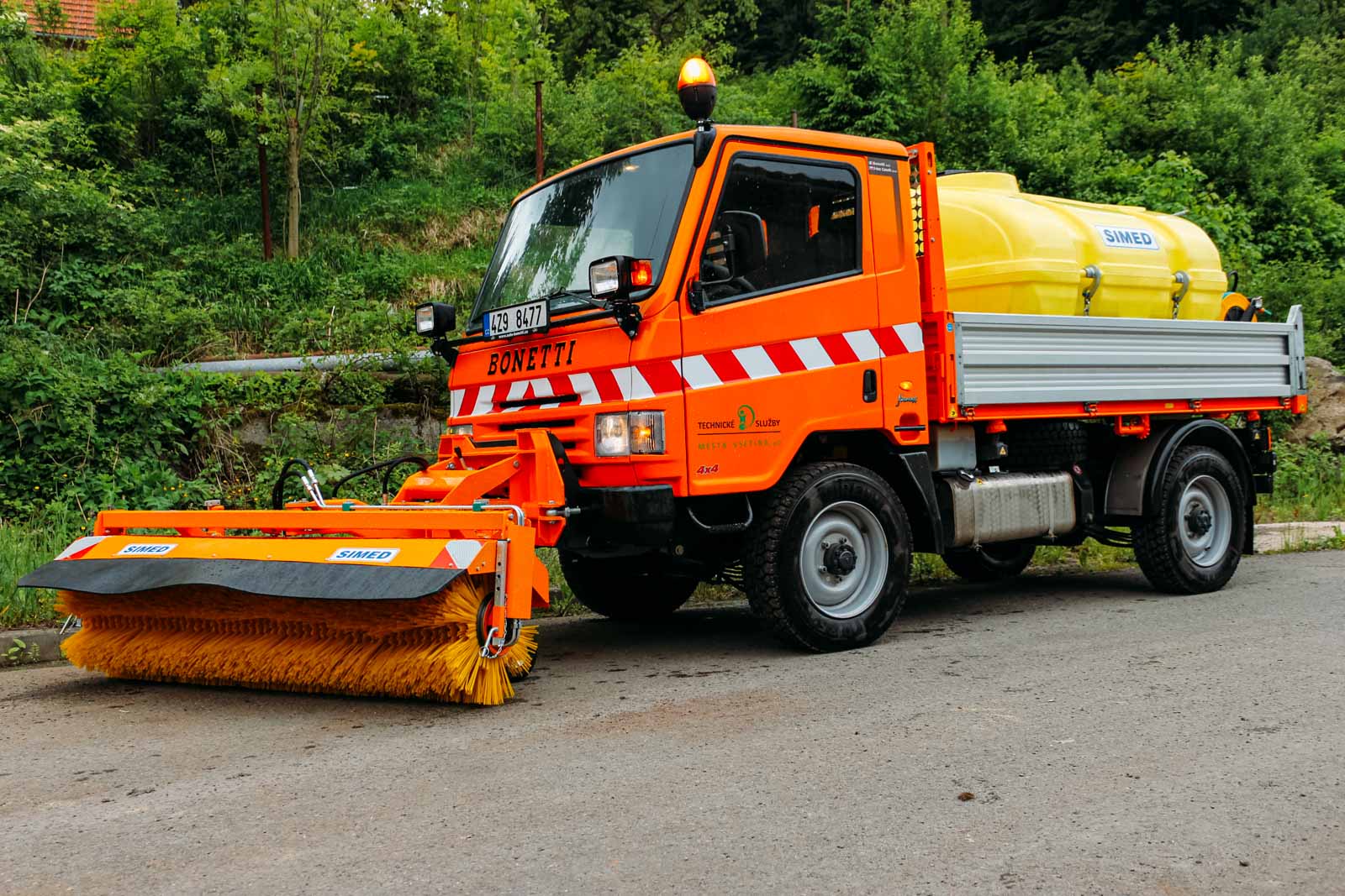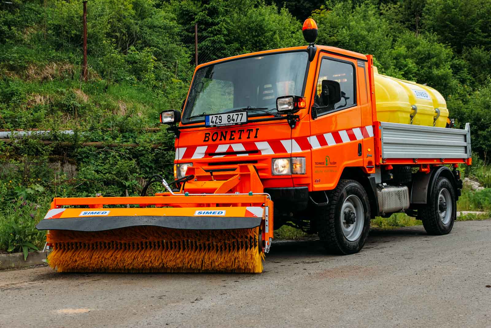 Spazzola anteriore amovibile applicata direttamente sulla piastra neve (UNI-EN 15432 tipo F2).